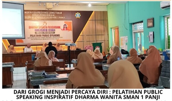 SITUBONDO – Dharma Wanita Persatuan SMAN 1 Panji terus menunjukkan komitmennya dalam meningkatkan kapasitas sumber daya anggotanya melalui kegiatan edukatif dan pengembangan diri. Salah satu upaya tersebut diwujudkan melalui pelatihan public speaking bertema “Anti Grogi Siap Aksi dengan Mengasah Kepercayaan Diri dan Keterampilan Berbicara di Depan Publik” yang digelar pada Jumat, 17 April 2026, di ruang guru SMAN 1 Panji.
