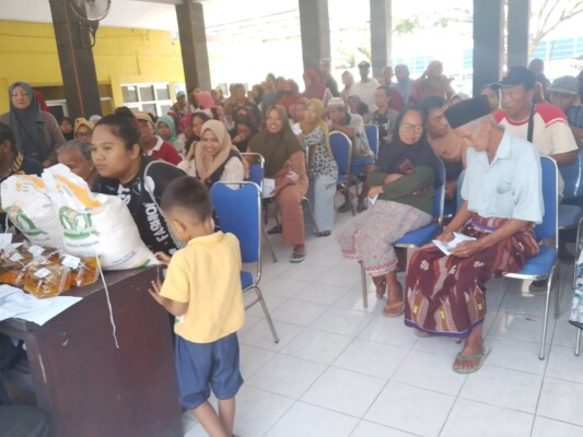 Proses distribusi bantuan berlangsung tertib dan lancar, dengan pengaturan alur penerimaan yang sistematis oleh panitia desa. Warga penerima terlihat antusias mengikuti pembagian, sekaligus tetap menjaga ketertiban selama kegiatan berlangsung.